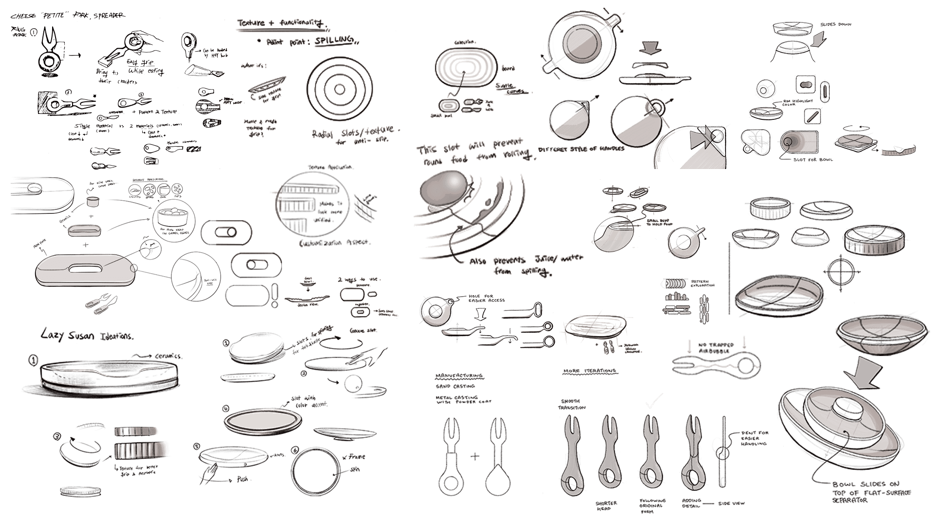We built mockups to test the groove’s size and depth, checking how well it prevented food from moving or spilling. We also ran a simple cleaning test to see if the surface could be easily maintained without trapping residue.